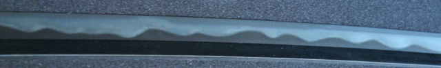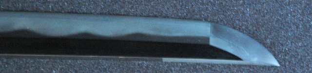 月山貞吉門、助広のとう乱を写したのであろう。銘も助広のごとく草書で切ってある。地金良く小沸豊富に付き刃が冴え出来が良い。初心者の方にお勧めする。