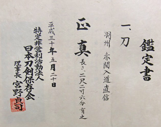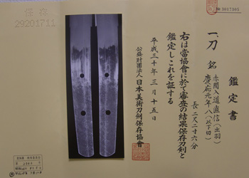 刀 赤間入道直信 慶応元年八(以下切) 品番