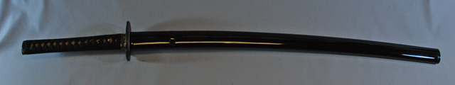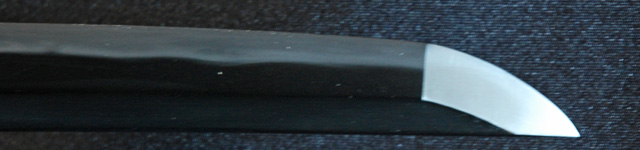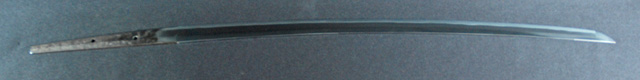 刀長 68.1cm(2尺2寸4分) 反り 1.6cm(5分3厘) 元幅 2.98cm 先幅 2.31cm 元重 6.5mm 先重 5.4mm  刀身重量 裸身 730g  鞘を払って 1,180g  摺上   目釘穴 2  刃文 小互の目 価格