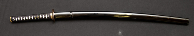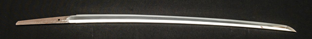 刀長 70.2cm(2尺3寸3分) 反り 1.3cm(4分3厘) 元幅 3.08cm 先幅 2.25cm 元重 7.1mm 先重 5.0mm 刀身重量裸身750g 鞘を払って 1,000g 茎 生 目釘穴 1  刃文  直刃 価格