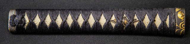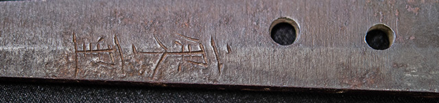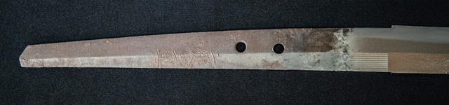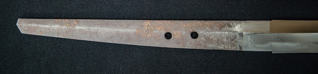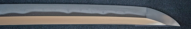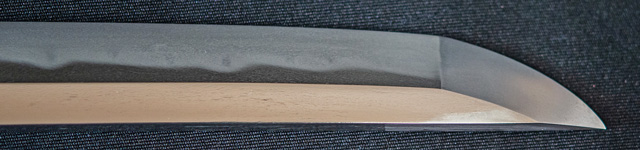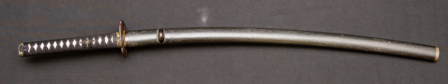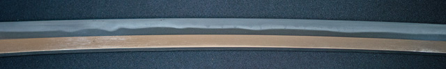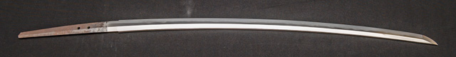 刀長 67.3cm(2尺2寸2分8厘) 反り 1.8cm(6分) 元幅 2.83cm 先幅 2.30cm 元重 6.9mm 先重 5.9mm 刀身重量裸身720g 鞘を払って 1,080g 茎 やや区送り 目釘穴 2  刃文 乱刃 価格