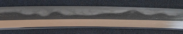 | 広正初代は南北朝の頃の人と云うが現存するものはない。本作は三代応永の広正であろう。刃紋はばき元は皆焼がかり足、葉盛んに働き刃先まで沸足入る。地金小板目肌良く錬れ出来が良い。 |