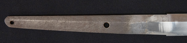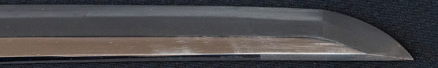 刀長 68.9cm(2尺2寸7分5厘) 反り 1.12cm(3分7厘) 元幅 3.01cm 先幅 2.55cm 元重 6.4mm 先重 5.3mm 刀身重量裸身800g  少し区送り 目釘穴 2  刃文 直刃 価格