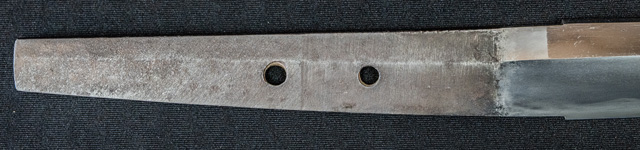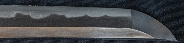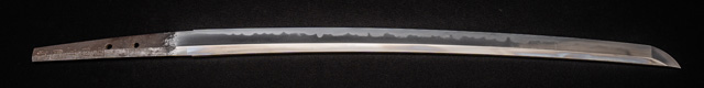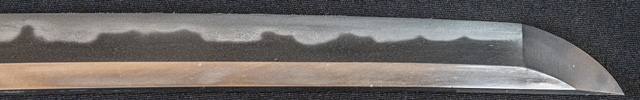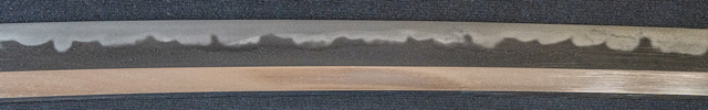 刀長 49.6cm(1尺6寸4分) 反り1.0(3分3厘) 元幅 3.05cm 先幅 2.9cm 元重 7.0mm先重 5.0mm重量 裸身520g 摺上 目釘穴 2 刃文互ノ目丁子 価格