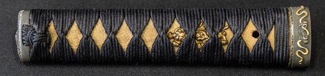 國助二代中河内国助の脇指である。一寸程摺上がっているのが惜しまれるが充分楽しめる脇指である。刃紋互ノ目乱一面に小足良く入る。刃冴え地金小板目肌良い。