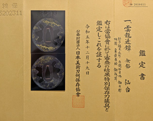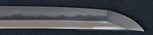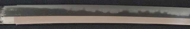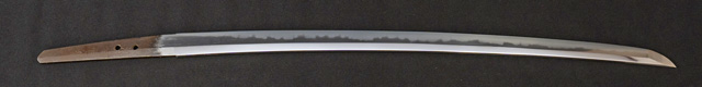 刀長 57.2cm(1尺8寸9分) 反り 1.1(3分6厘) 元幅2.90cm 先幅2.24cm 元重6.7mm 先重5.2mm 刀身重量裸身570g 鞘を払ってg  目釘穴 2 刃文 互ノ目丁子 価格