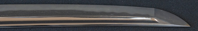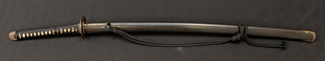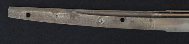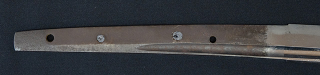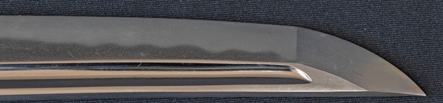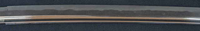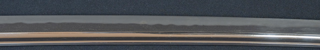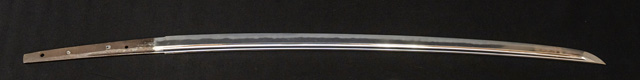 | 刀長 70.7cm(2尺3寸2分) 反り 1.4cm(4分6厘) 元幅 3.10cm 先幅 2.56cm 元重 6.1mm 先重 5.4mm 刀身重量裸身690g 鞘を払って950g 茎 大摺上 目釘穴 4 刃文 互ノ目 |