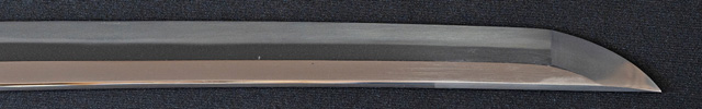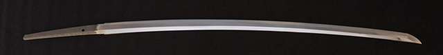 | 刀長 76.5cm(2尺5寸2分5厘) 反り 1.97cm(6分5厘) 元幅 2.92cm 先幅 2.34cm 元重 6.0mm 先重 4.8mm 刀身重量裸身720g 茎 生 目釘穴 1 刃文 直刃 |