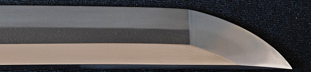 | 忠広二代の作である。初代が寛文九年に没しているので二代の初期作である。地金梨地(小糠肌)良く錬れる。刃紋直刃、小沸厚く付き刃冴えて出来良し。 |