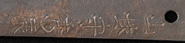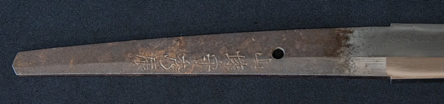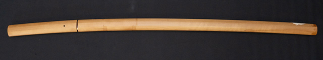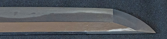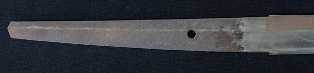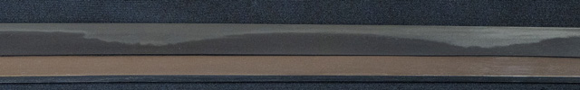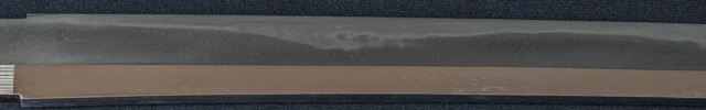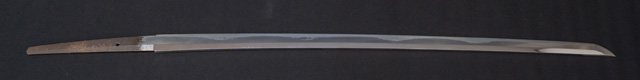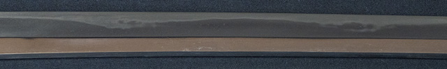 | 刀長 76.1cm(2尺5寸1分) 反り 1.0cm(3分3厘) 元幅 3.25cm 先幅 2.47cm 元重 6.7mm 先重 5.2mm 刀身重量裸身850g 茎 生 目釘穴 1 刃文 のたれ刃 |