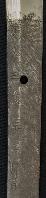 | 刀 予州吉田住三品源正道作之 文久三亥年年二月 |