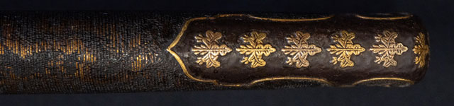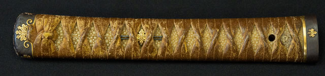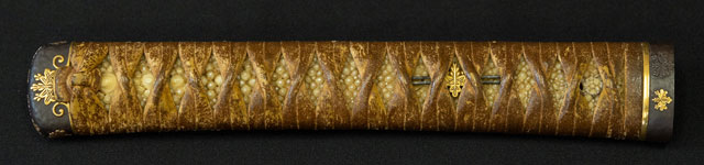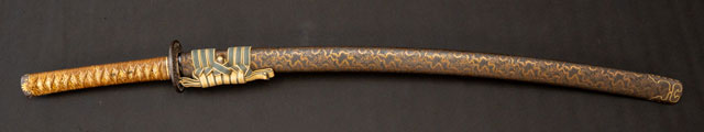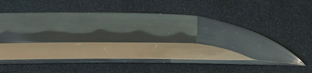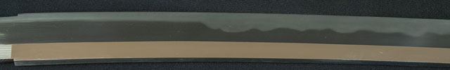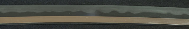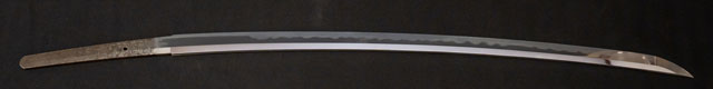 | 刀長 70.5cm(2尺3寸2分強) 反り 2.0cm(6分6厘) 元幅 3.11cm 先幅 2.54cm 元重 6.8mm 先重 5.3mm 刀身重量 裸身770g 鞘を払って 1,080g 茎 生 目釘穴 1 刃文 乱刃 |