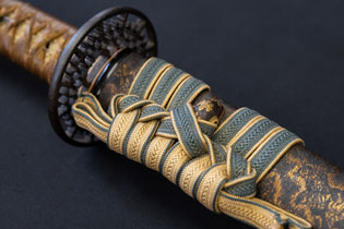 | 鈴木次郎正雄は清麿がまだ正行と名乗っていた頃からの弟子で、嘉永六年独立する江戸下谷御徒町に住する。以蝦夷地岩内の砂鉄とあるので自家製鉄をやったものである。正雄は勤王家でかつ具眼有情の士であり北方の警備の為朝野の志士が相次いで蝦夷入りをした。その志士達の為に作刀した一振りである。鍛は鉦目鍛。刃紋乱刃砂流しさかんに入り金線芋ズル入り。刃冴えて出来良し。 |