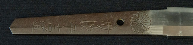 茎に菊紋があるので京二代の吉道である。刃紋小沸出来簾刃頻りに砂流し小足良く入り刃良く沸る。