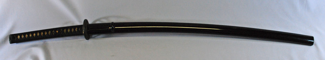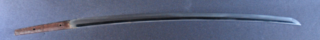 刀長 69.7cm(2尺3寸) 反り 1.82cm(6分) 元幅 3.13cm 先幅 2.32cm 元重 6.6mm 先重 6.0mm  刀身重量  裸身 780g 鞘を払って1,030g  磨上   目釘穴 2  刃文 乱刃 価格