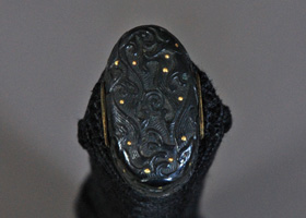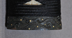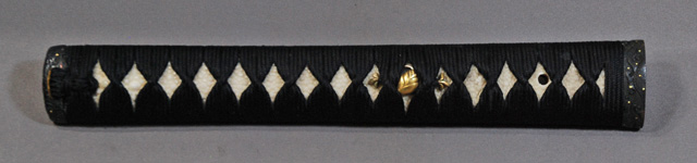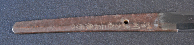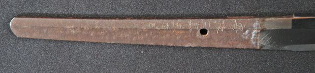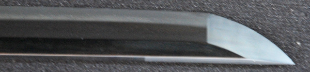 | 刀長 71.7cm(2尺3寸6分) 反り 1.6cm(5分2厘) 元幅 3.08cm 先幅 2.41cm 元重 8.5mm 先重 6.3mm 刀身重量 裸身 900g 鞘を払って1,200g 茎 生 目釘穴 1 刃文 直刃 |
