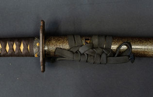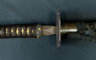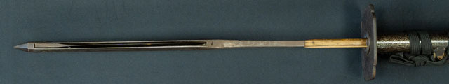 刀長 36.0cm(‐尺‐寸‐分) 反り ‐cm(‐分‐厘) 元幅 ‐cm 先幅 ‐cm 元重 ‐mm 先重 ‐mm  刀身重量  裸身 ‐g 鞘を払って