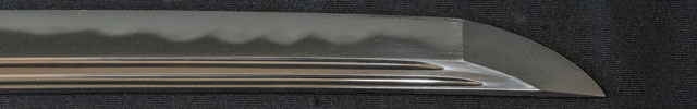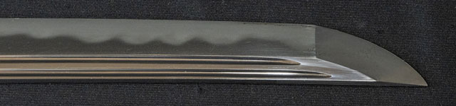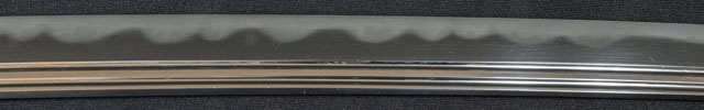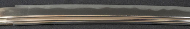 刀長 74.9cm(2尺4寸7分) 反り 2.2cm(7分2厘) 元幅 3.19cm 先幅 2.31cm 元重 7.2mm 先重 4.5mm 刀身重量裸身788g 鞘を払って-g 生 目釘穴 1  刃文 互ノ目丁字 価格