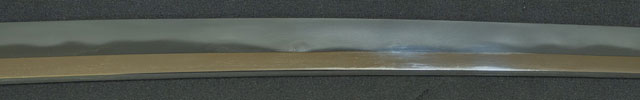 | 刀長 56.0cm(1尺8寸4分) 反り 1.2cm(-分-厘) 元幅 -cm 先幅 -cm 元重 -mm 先重 -mm 刀身重量裸身-g 鞘を払って-g 茎 生 目釘穴 1 刃文 濤乱刃 |